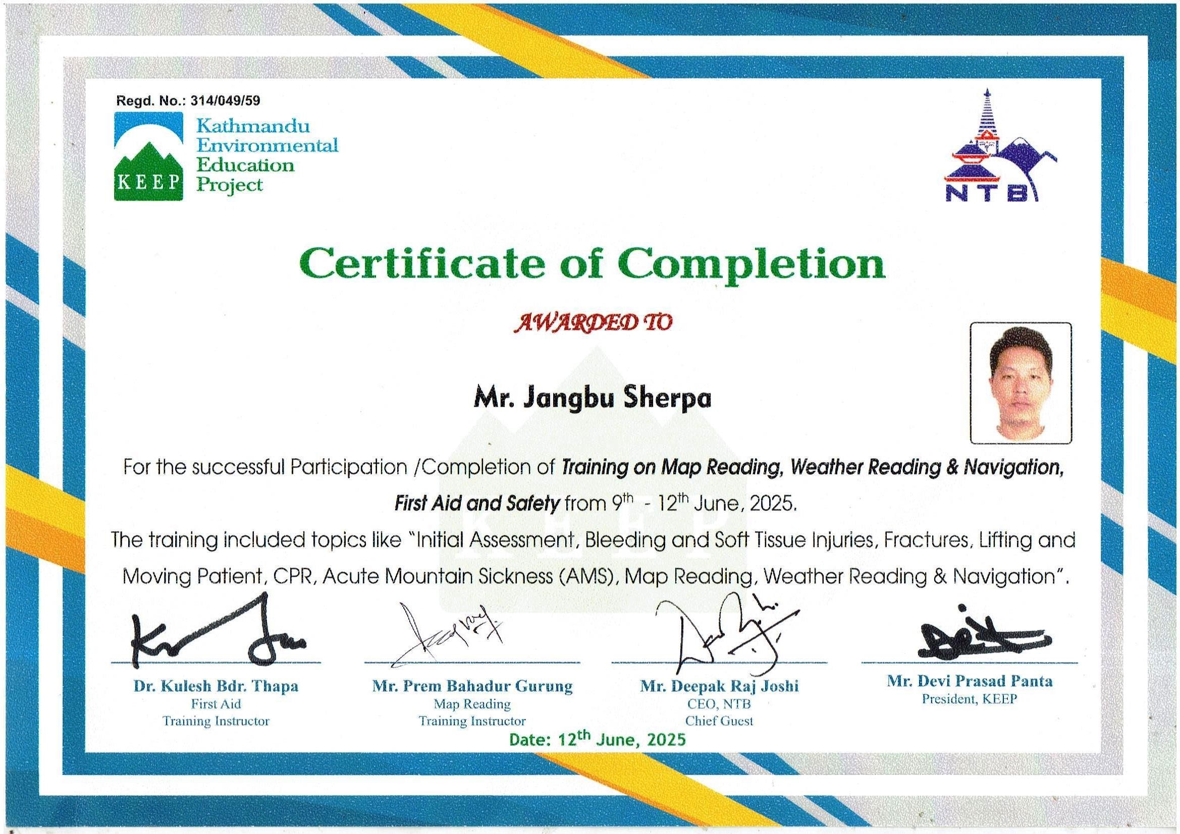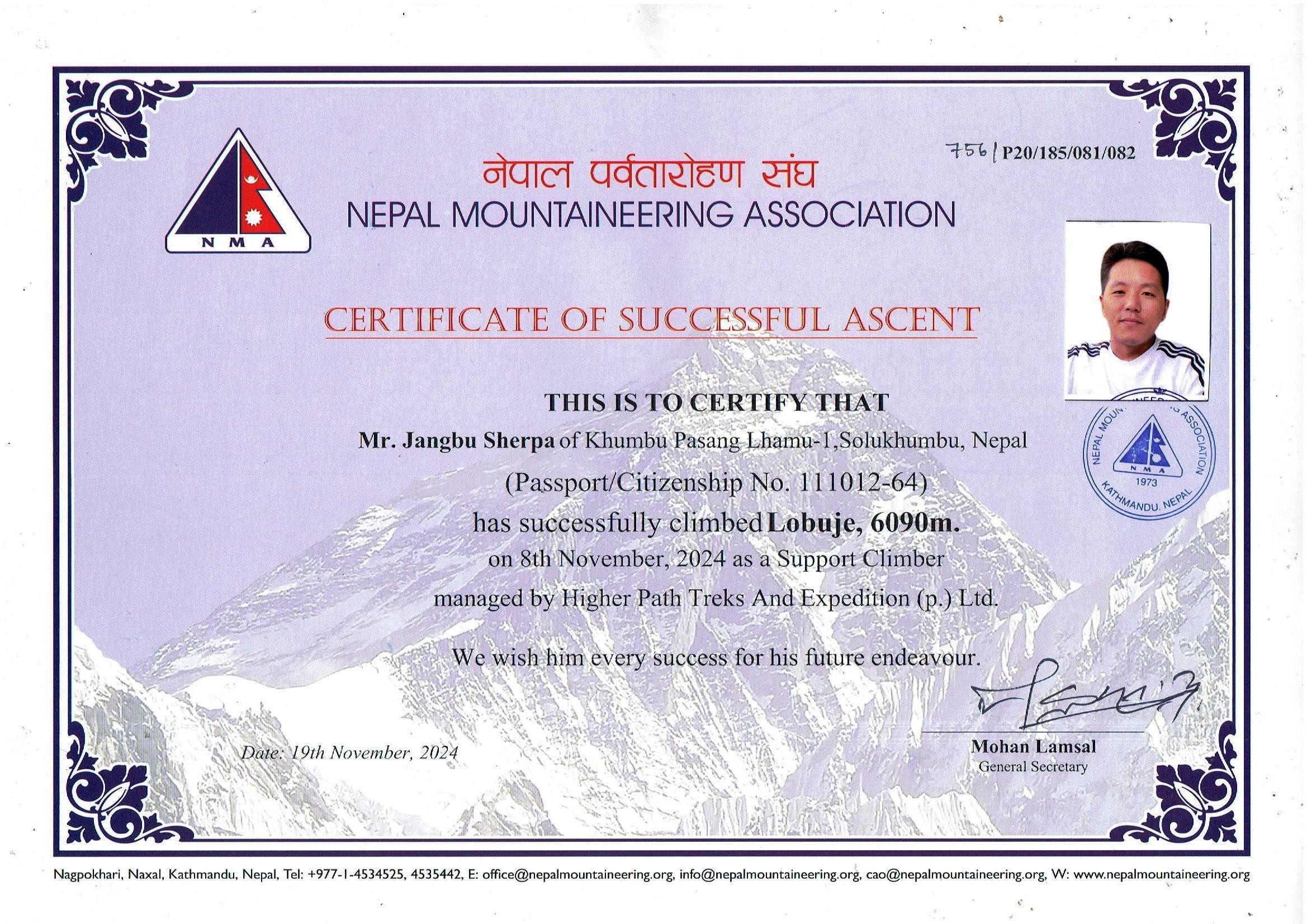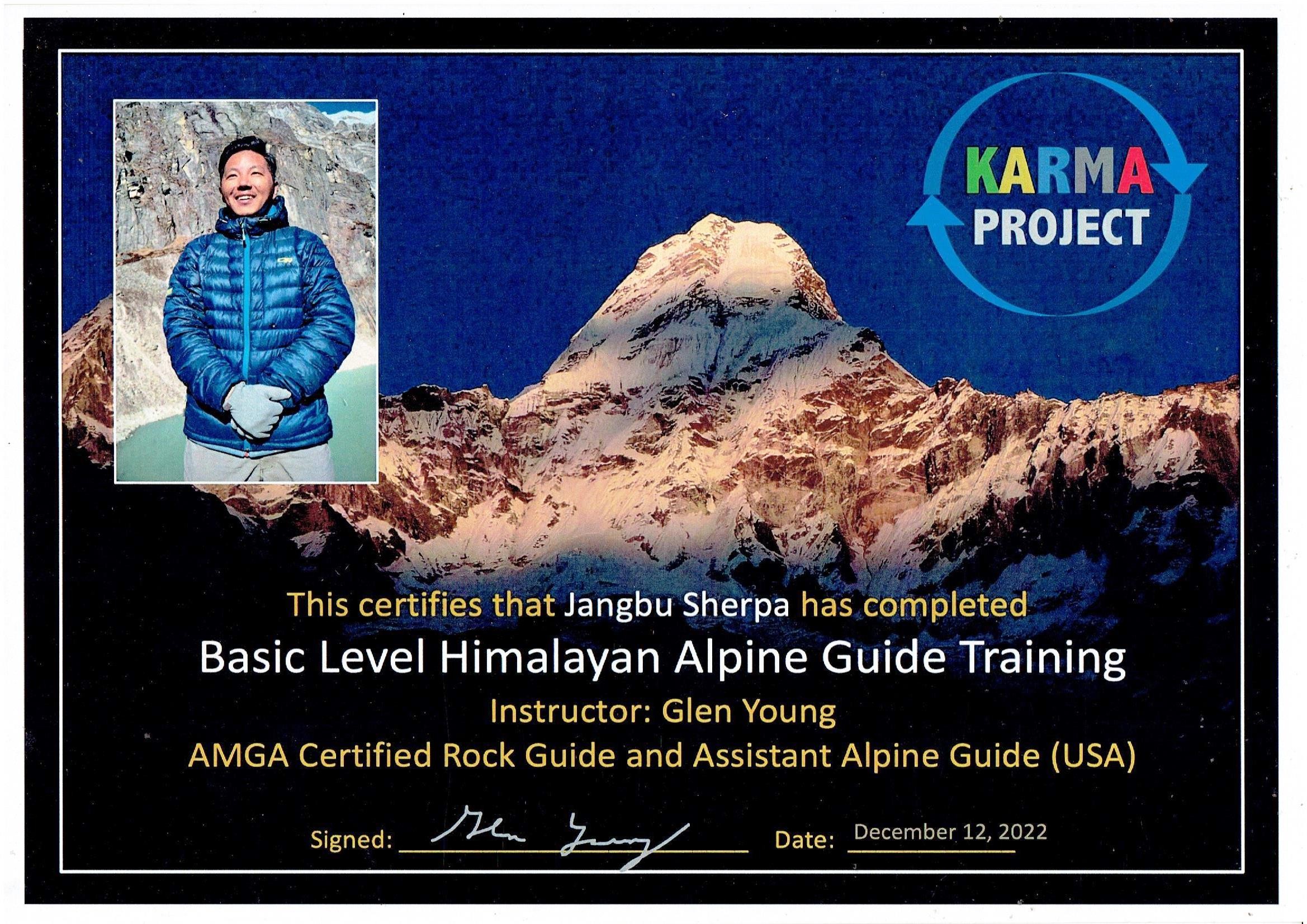 Jangbu Sherpa is an experienced trekking and climbing guide from Nepal. He is based in Juving-01, Solukhumbu, and currently resides in Kapan, Kathmandu. As a male guide who has been professionally guiding since 2014, Jangbu speaks English, Hindi, and German. He holds guide license #10381 and is known for his dedication to providing safe and memorable mountain adventures. Jangbu is single and brings extensive experience and expertise to his guiding work.