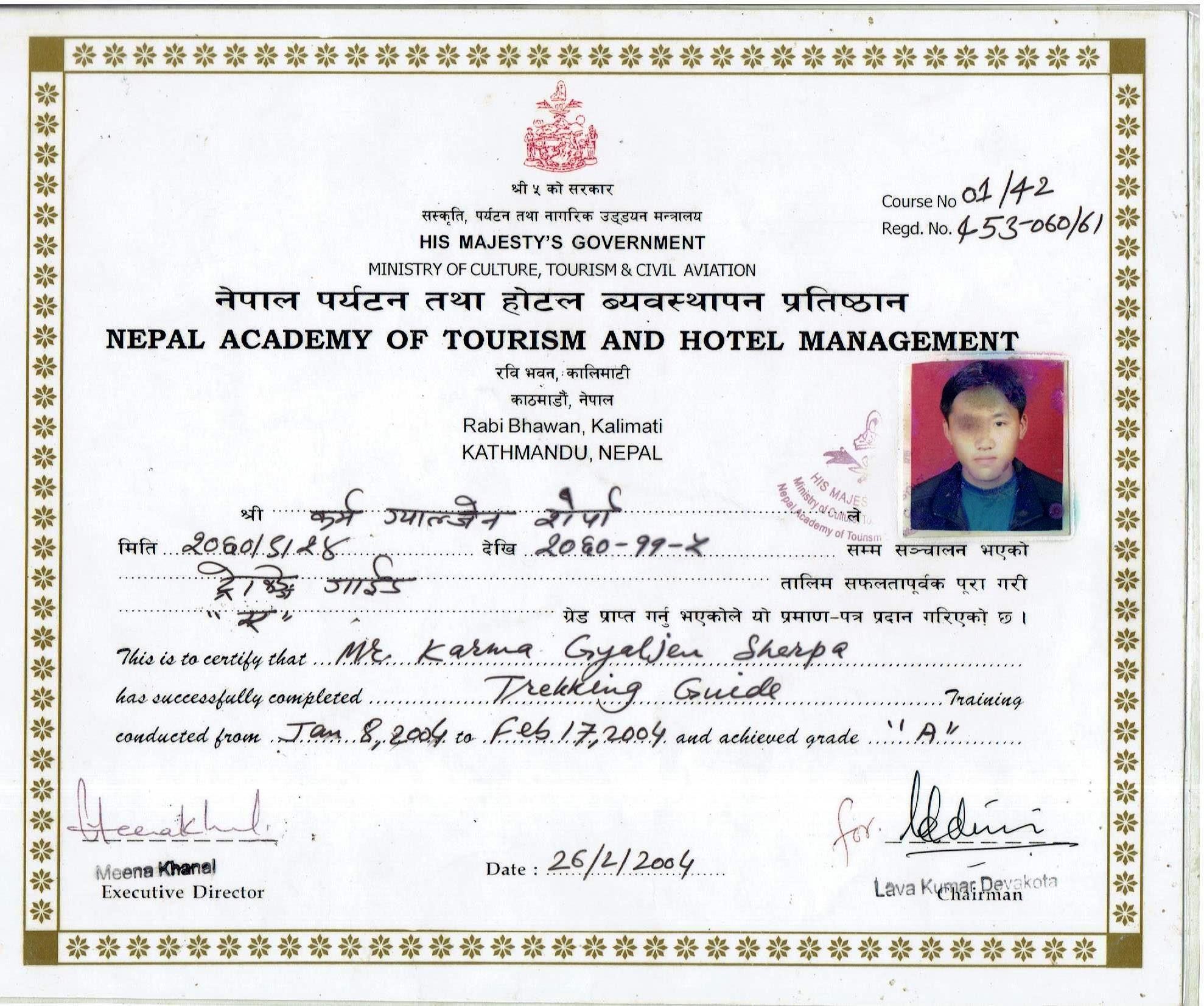 Best described as self-driven, a far-sighted individual with immense passion and dedication towards mountaineering, or adventure as a whole, Mr. Karma Geyljen Sherpa is the Founder and Chairman of Higher Path Treks & Expeditions.He is also Executive Chairman of Karma Project, From an early age, Mr. Sherpa was instigated by the thrill of the mountains. Having been brought up amidst the beautiful landscapes of Solukhumbu, Mr. Sherpa has immense pride and love towards the mountains and believes that “to travel is to live”. Sherpa has successfully climbed over eight summits including some of the highest peaks in the world such as Mount Everest, Manaslu, Ama Dablam, Dhaulagiri, Cho-Oyu, etc. several times. Mr. Sherpa has also excelled in various training courses, Trekking Guide Training course (2004), Mountain Climbing Basic and Advance training course (2005/ 06) and high mountain Rescue Training Course (2007) are to name a few. Apart from indulging himself in this field for 17 years, Sherpa shares an utmost love for his village and has been involved in numerous villages’ development projects such as micro-hydroelectric project, educational projects, health camps, supporting local guides and tourism. His leadership qualities, dedication, decisive nature, and empathy towards Mother Nature and his hometown are what has always helped him achieve his goals.