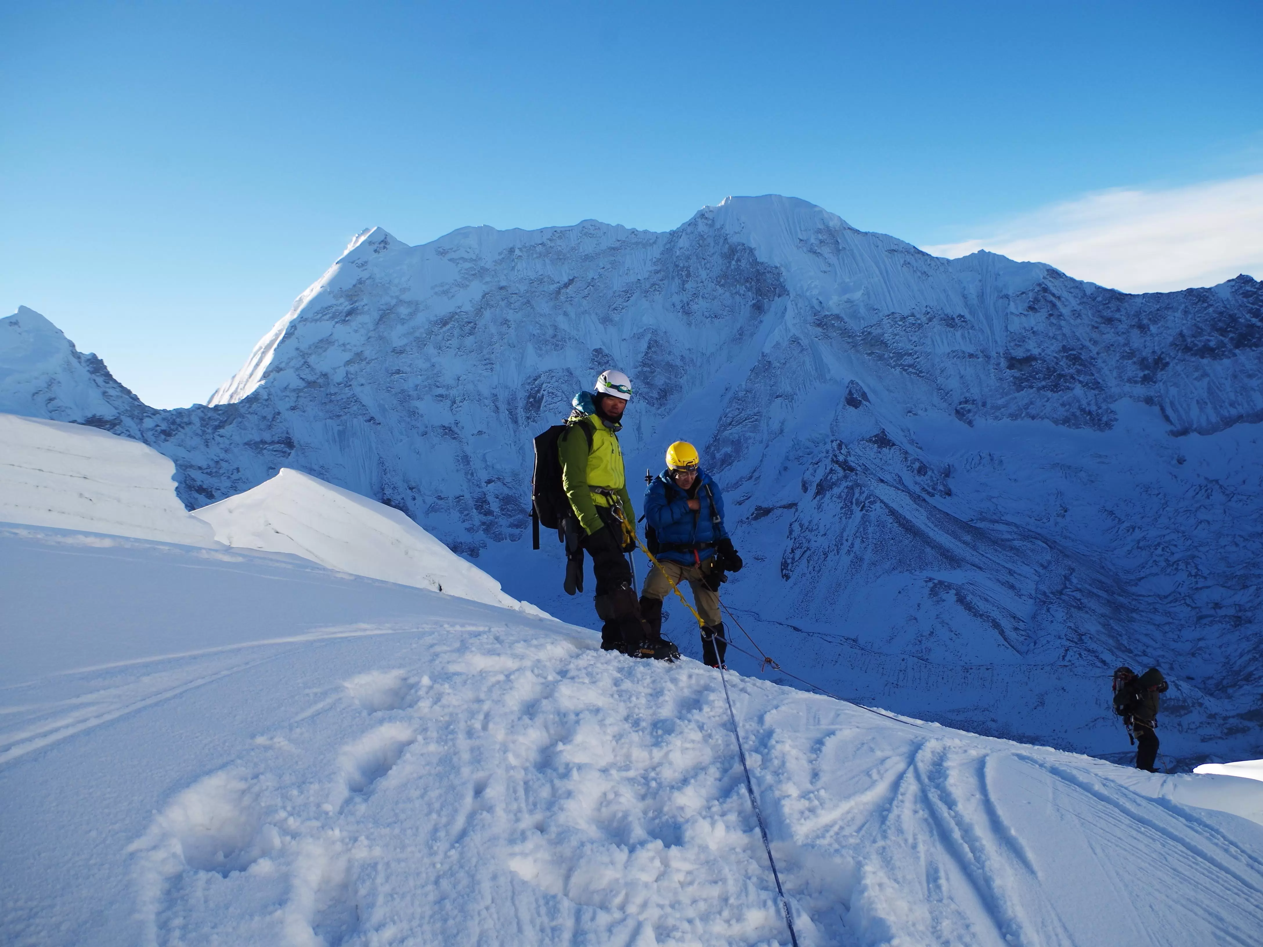 The entire expedition typically takes around 18-20 days from Kathmandu, including acclimatization days, trekking to Everest Base Camp, and the climb to Island Peak. The climbing period usually spans 1-2 days, depending on weather conditions and acclimatization.