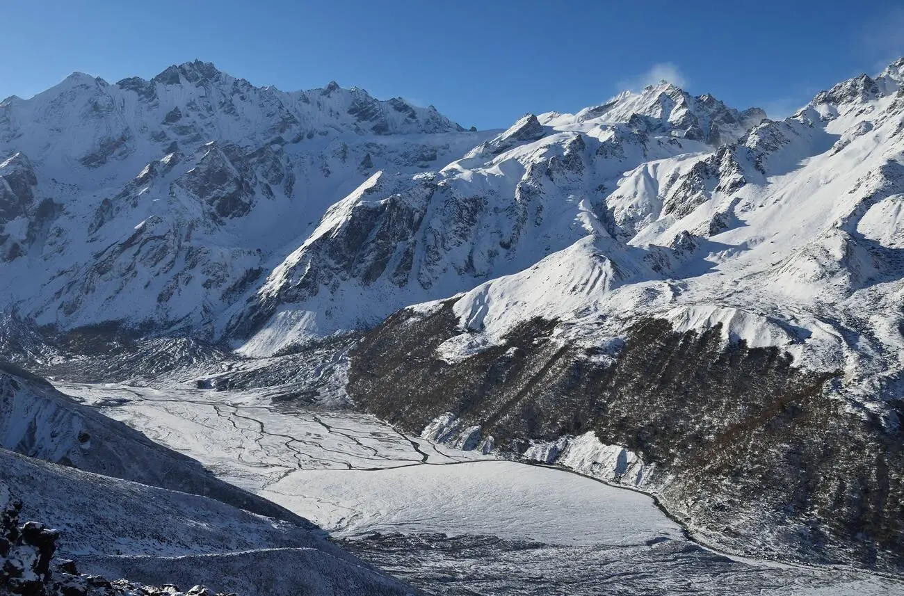 Today's trek takes you further into the Langtang Valley, following the trail that ascends gradually through yak pastures and stone-built houses of Tibetan influence. The trail offers stunning views of the Langtang range. You'll arrive at Kyangjin Gompa (3,870m/12,697ft), a Buddhist monastery surrounded by mountains, in about 4-5 hours. In the afternoon, you can explore the area, visit the monastery, and a cheese factory where traditional yak cheese is produced. Overnight stay in Kyangjin Gompa.
